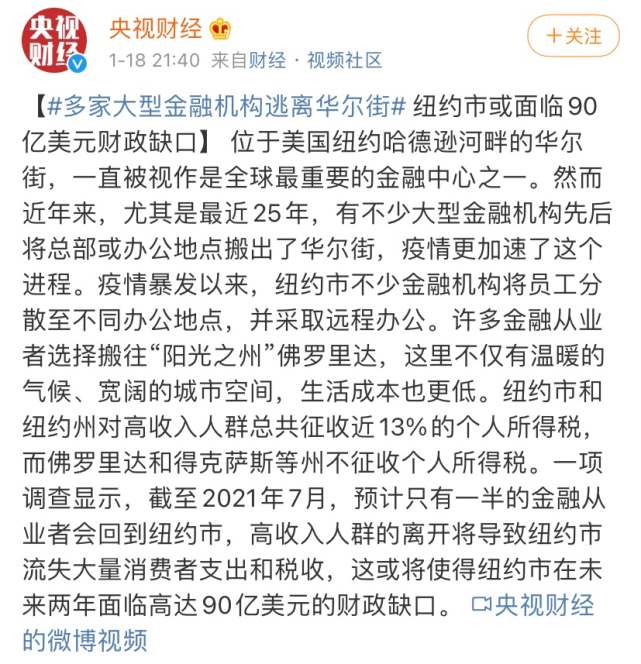 当人们还在争执“硕士毕业生,到底该不该去送外卖”时,一则名为“多家大型金融机构逃离华尔街”的消息冲上了微博热搜。